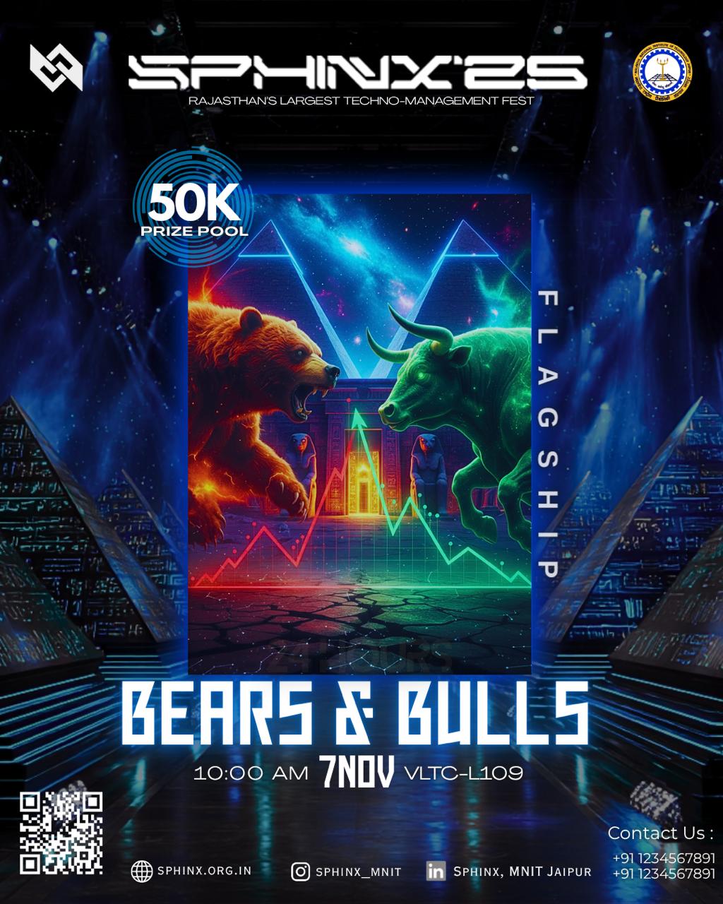 Bears and Bulls is an intense mock trading competition, challenging participants to manage a virtual portfolio using real-time market data. This competition is a true test of market savvy, strategic execution, and financial acumen under pressure. Participants navigate live market dynamics across two intense rounds, competing to achieve maximum returns and secure the top position.