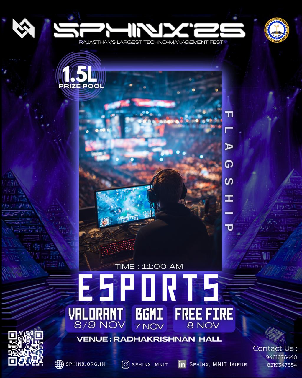 E-Sports is a high-stakes competitive gaming tournament, challenging teams in globally recognized titles like BGMI, Freefire, and Valorant. This competition is a true test of advanced strategy, lightning-fast reflexes, and flawless teamwork within a high-pressure digital arena. Experience a remarkable showcase of digital skill as top players battle for supremacy and the championship title.